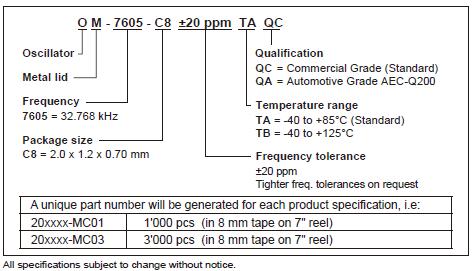 OM-7605-C8-32.768kHz-20PPM-TA-QC,微晶晶振 编码说明